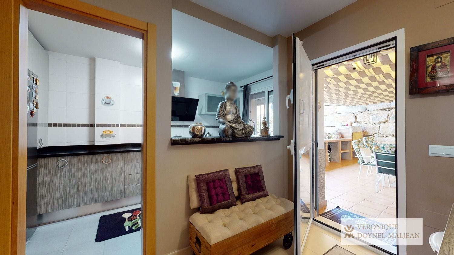 Dividida en varios niveles y cada uno con espacios de exterior, un porche en la entrada de la vivienda de unos 20m2, a nivel de la cocina otra terraza de unos 30m2. Instalado un toldo que cubre toda la terraza si se quiere.