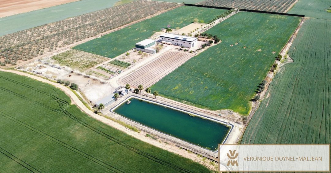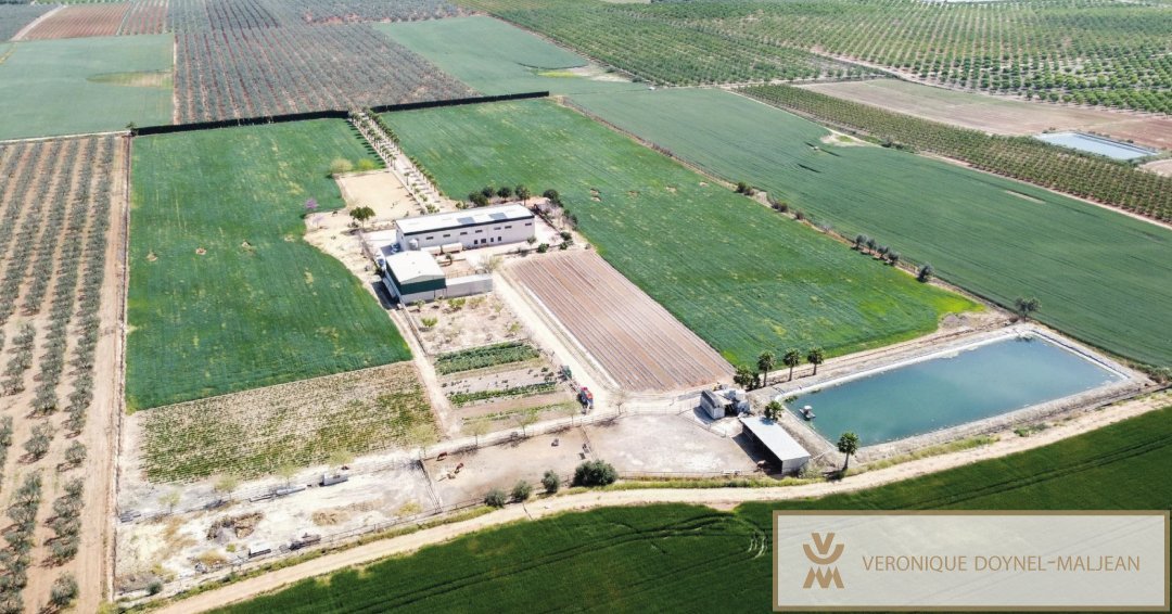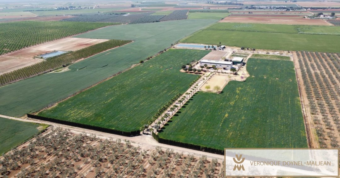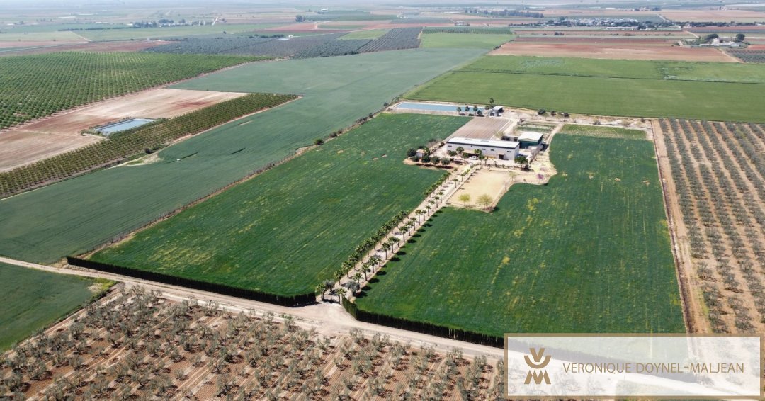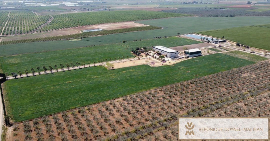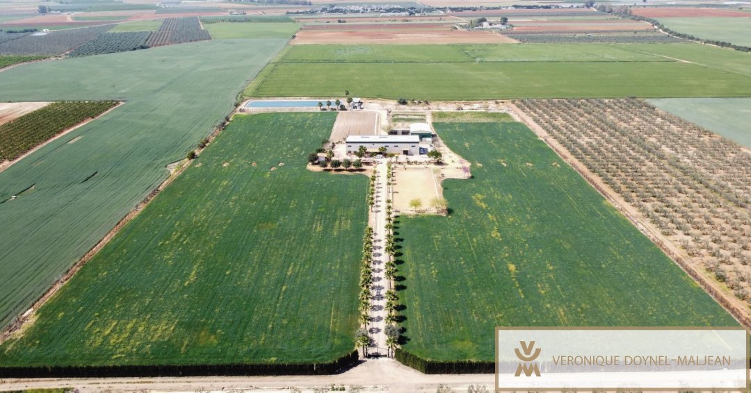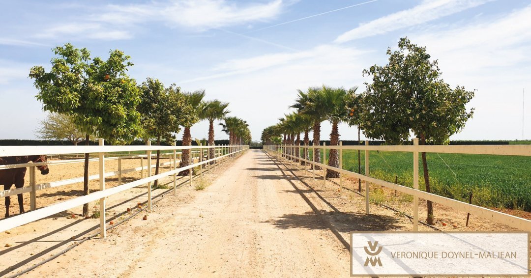 Esta finca cuenta con diversas instalaciones y construcciones. Su diseño es rectangular, con orientación Este-Oeste y una topografía completamente plana. El acceso se encuentra en su lado Este, a través de caminos de tierra compactada en excelente estado. La propiedad está completamente vallada en todo su perímetro, y la entrada se realiza a través de una cancela automática rodeada de majestuosas palmeras.