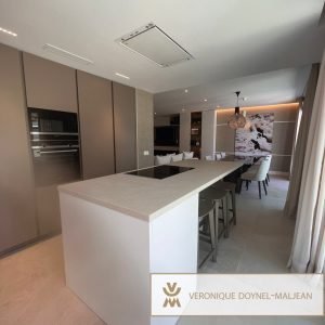 - electrodomésticos de la marca Siemens y diseño actual: frigorífico, horno, microondas, lavavajillas, lavadora-secadora integrable, fregadero, grifería, placa de inducción y campana.