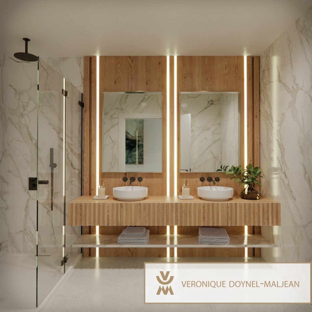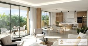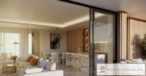 Interiormente las viviendas contarán con suelos porcelánicos de gran formato, carpintería de aluminio de gran calidad de suelo a techo, cocinas de diseño con isla, baños con sanitarios de alta gama, sistema de climatización por aerotermia, suelo radiante y domótica.