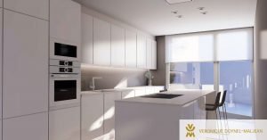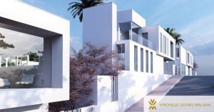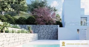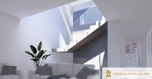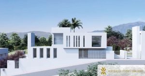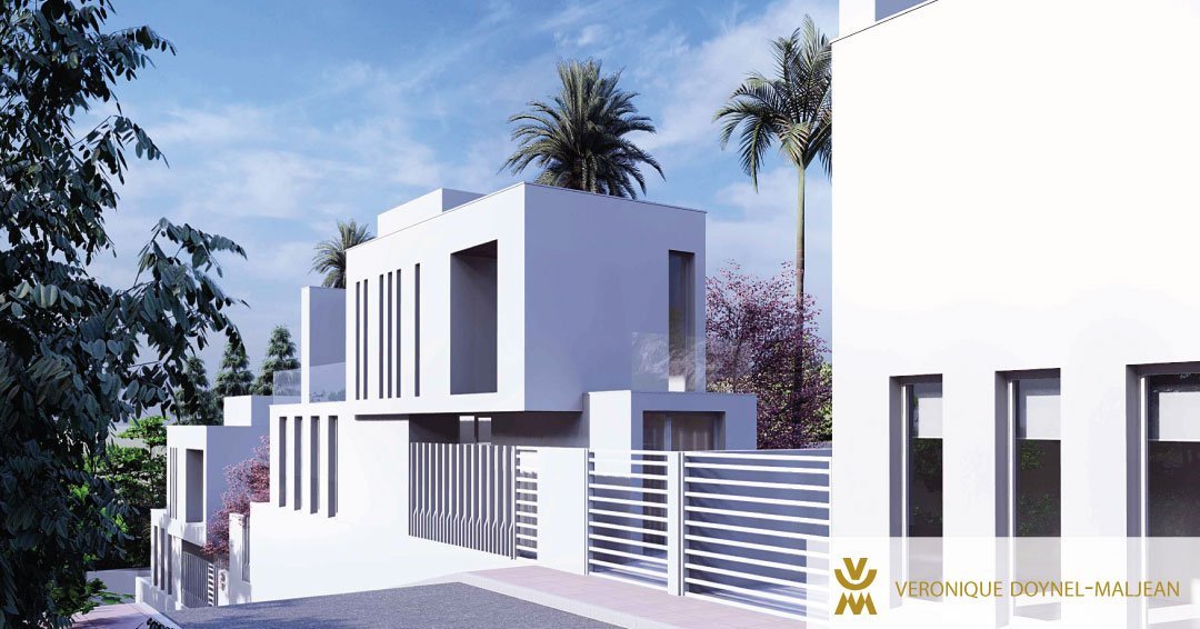 Se trata de una vivienda unifamiliar orientada al sur, con zona de terraza y un gran espacio ajardinado privado. La construcción, que combina volúmenes blancos y paño de vidrio, crea un juego de llenos y vacíos en el que la luz es clara protagonista.